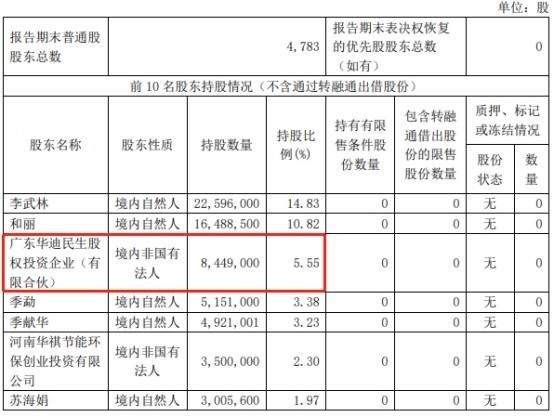 京源环保2024年第三季度报告显示,华迪民生系公司第3大股东。